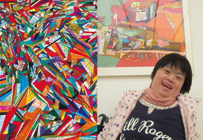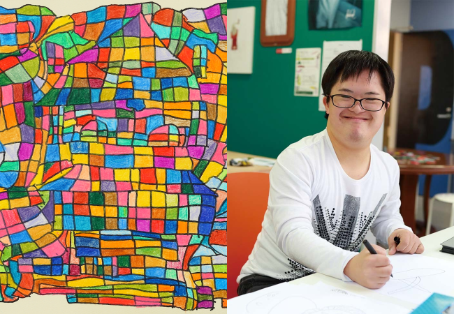 1999年生まれ。題材は、彼が興味のあるもの全て。様々な色で描かれた作品は、彼の明るさそのもの。作品を見ているだけで、人を元気にする魅力がある。迷いなく描く姿は、大胆かつ繊細。