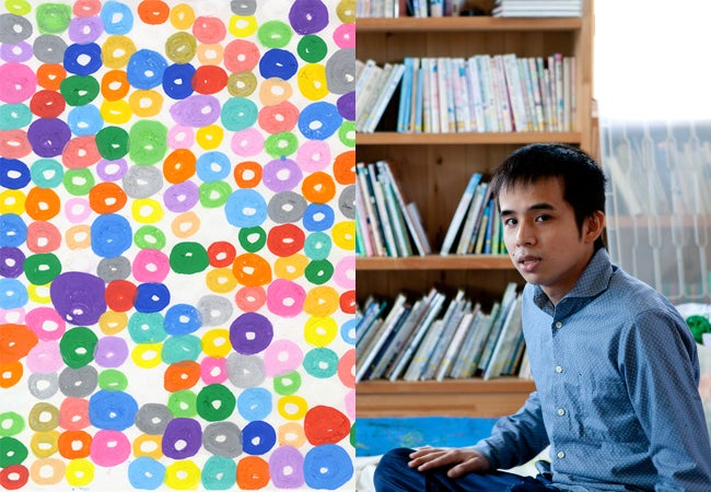 1992年生まれ 仙台市在住。2011年多夢多夢舎所属。いつも一番乗りで、多夢多夢舎の一日は、彼のあいさつから始まる。はじめは小さな丸を並べるだけだったが、サインペンを使うようになってから全体を観て余白を生かすようになった。絵の具、色鉛筆を駆使して、デザイン性の高いものを仕上げている。一度会った人の名前は(たまにしか)忘れない。