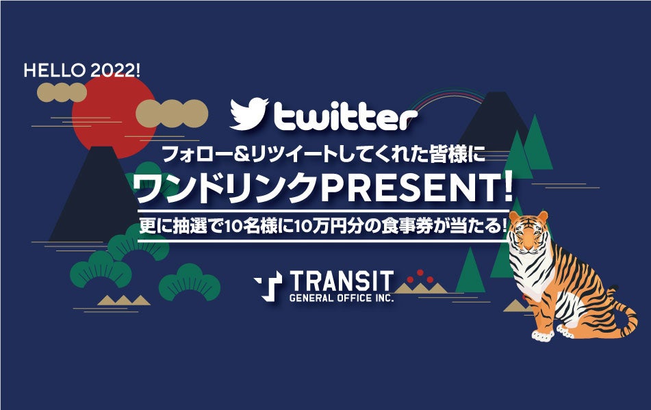 Step.4 フォロー&リツイートしてくれた方の中から抽選で10名様に本キャンペーン終了後、トランジットジェネラルオフィスの複数店舗でご利用いただける10万円分のお食事券をプレゼント!当選された方に2月初旬を目途にDMでご案内お送りさせていただきます。