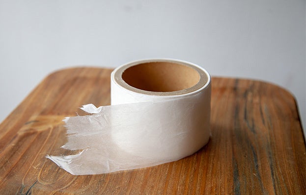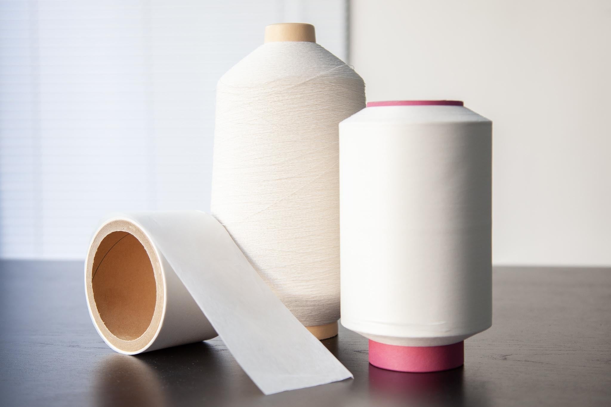 ▲和紙は伸縮性が全くと言っていいほどないため、編み立てがとても難しい糸。