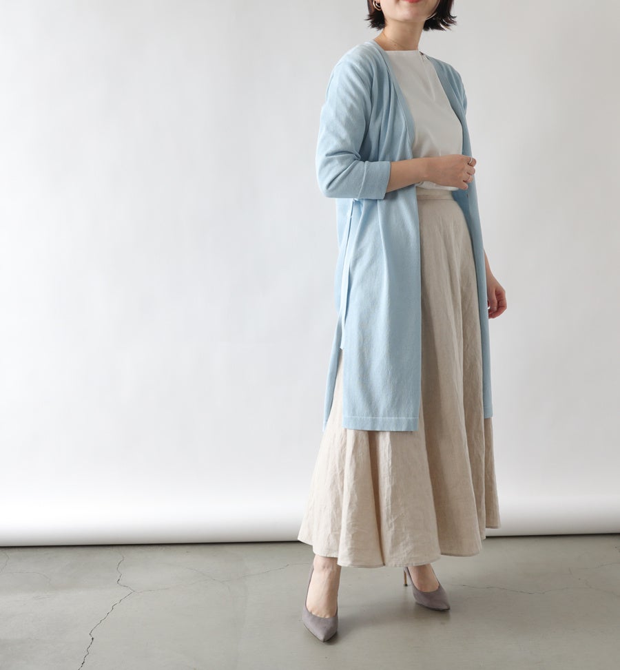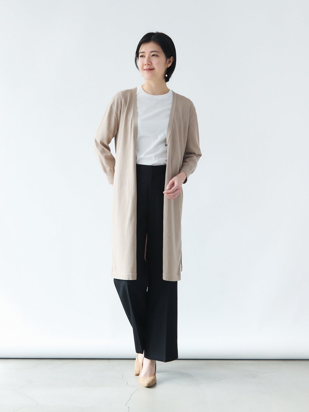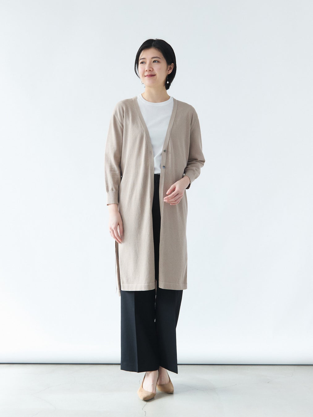 この前後差のおかげでロングカーディガン特有の重たさがなくなって軽やかな印象に。