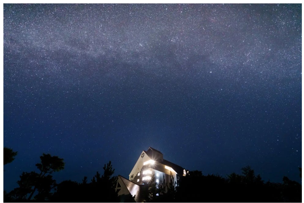 伊豆半島で最も星に近いホテルハーヴェスト天城高原は、標高約900mに位置しております。標高が高く、視界が開けており、周辺の灯りも少ないことから、2019年より総合光学機器メーカー「株式会社ビクセン」と一緒に星空観賞会を開催しております。