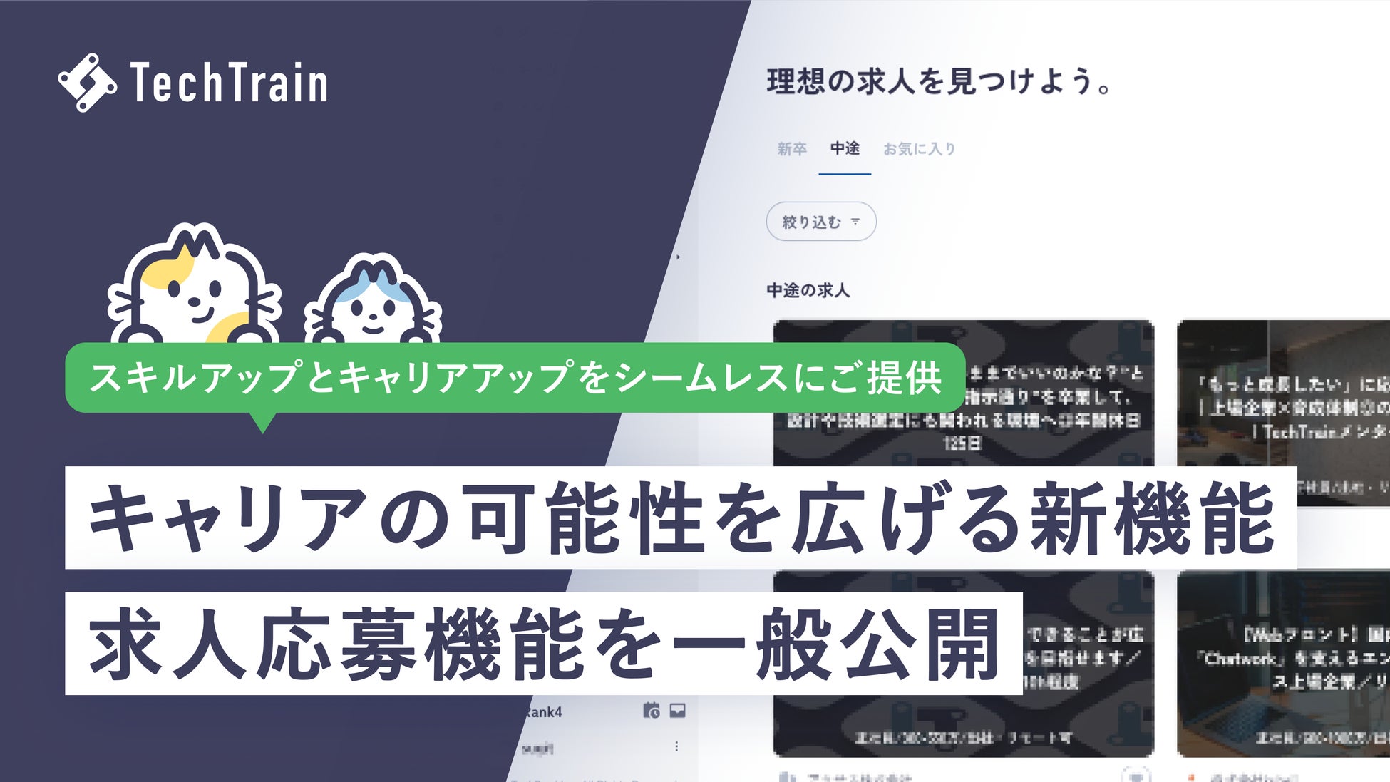 TechTrain、求人応募機能を一般公開。すべてのエンジニアに、成長機会と活躍機会を提供するプラットフォームへ。