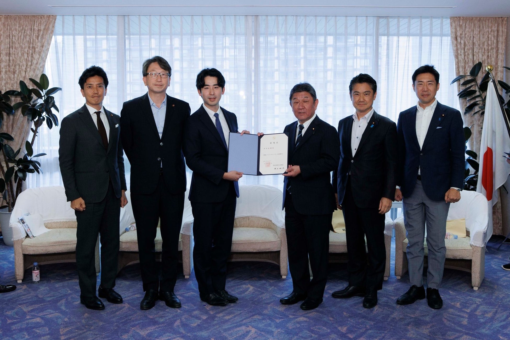 2023年5月26日に、リバースメンターの委嘱状交付式が行われ、自民党の茂木敏充幹事長(党改革実行本部長)から、当社代表の坪井俊輔に委嘱状が手渡されました。
