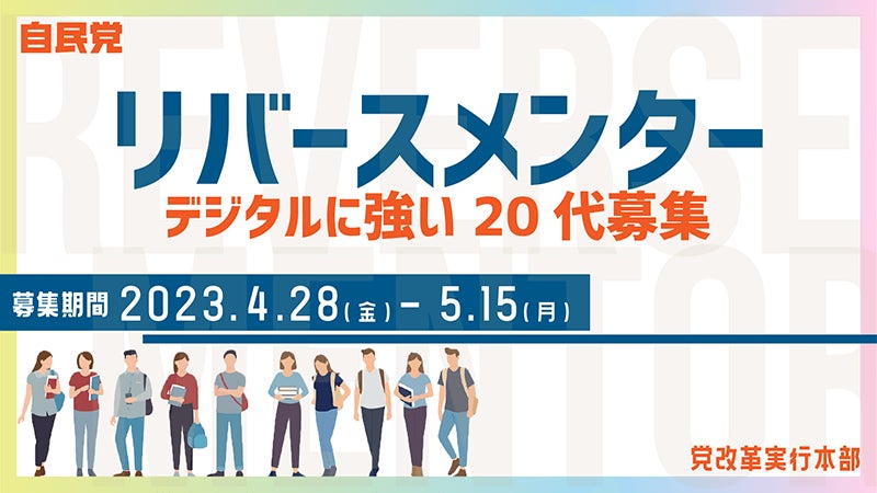 自民党の党改革実行本部が策定した「自民党ガバナンスコード」の基本原則2には、「多様な人材の育成と登用」とあります。この原則に基づいて実施されるのが、「リバースメンター」です。若者の政治参画推進に向けた取り組みとして、若者の視点から自民党にアドバイス・政策提言を行う「リバースメンター」が募集されました。