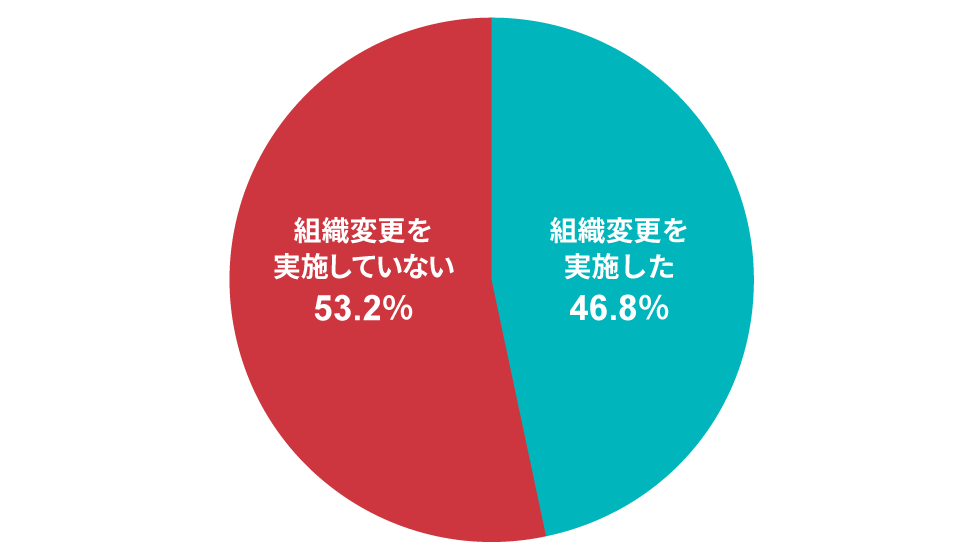 具体的な組織改編に動き出した企業も、全体の半数に及ぶことが分かりました。「23年度、マーケティングに関連した組織変更を実施したか」(年度は各社に準じる、以下同)の設問に対して、「実施した」と回答した企業は46.8%でした。「24年度、マーケティングに関連する組織変更を実施する」の設問についても、34.3%が「実施予定がある」と答えました。