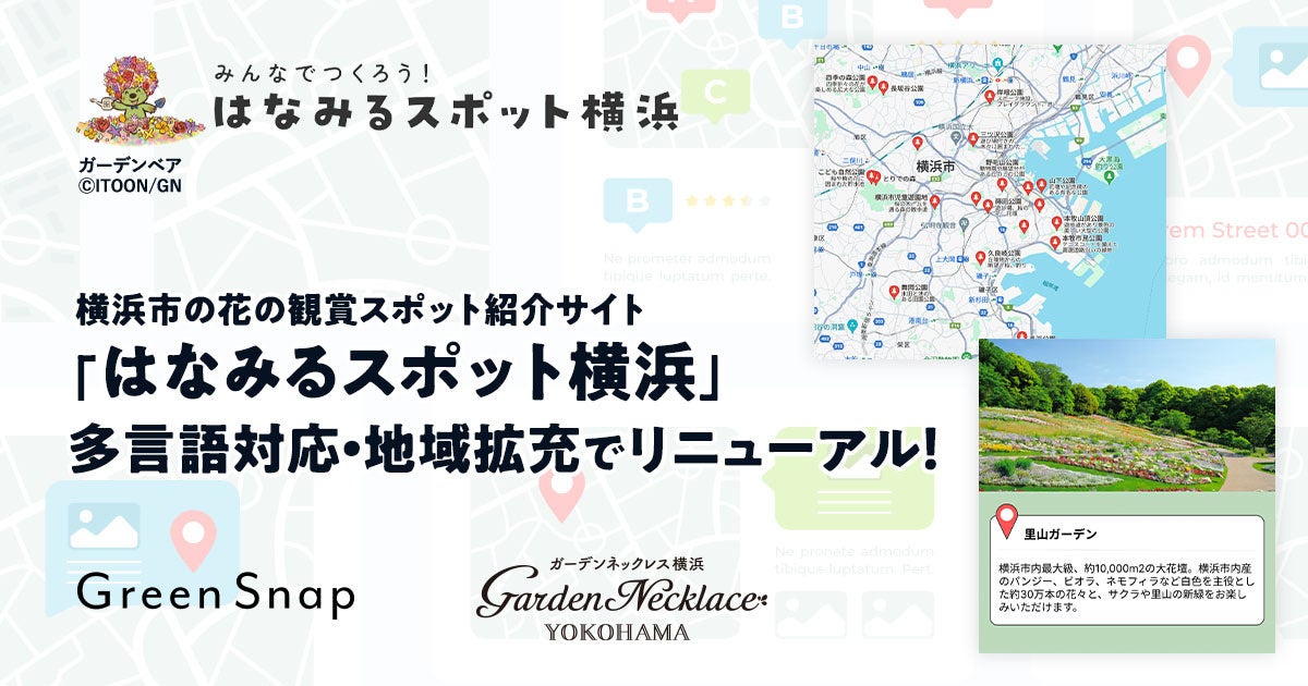 植物コミュニティアプリ「GreenSnap」を運営するGreenSnap株式会社(本社:東京都中央区、代表取締役:西田貴一)は、横浜市と連携して展開する花の観賞スポット紹介サイト「はなみるスポット横浜(https://yokohama.hanamiru-spot.jp/)」を2025年3月にリニューアルいたしました。