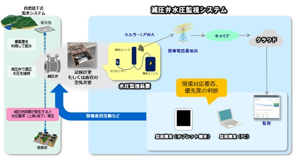 株式会社日立システムズ(代表取締役 取締役社長:柴原 節男、本社:東京都品川区/以下、日立システムズ)は、神戸市水道局から受託した配水減圧弁*1の水圧データ提供等業務において、「CYDEEN水インフラ監視サービス(水圧監視)」を活用し、推進しています。具体的には、減圧弁水圧監視システムの構築、市内60か所以上の減圧弁付近への水圧監視装置の設置などを通じて、水圧データの提供・運用を行っています。