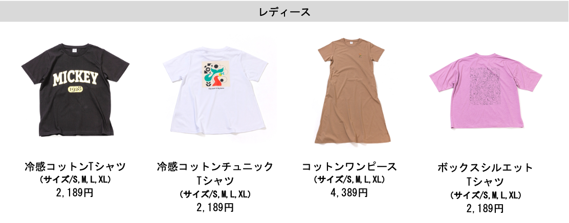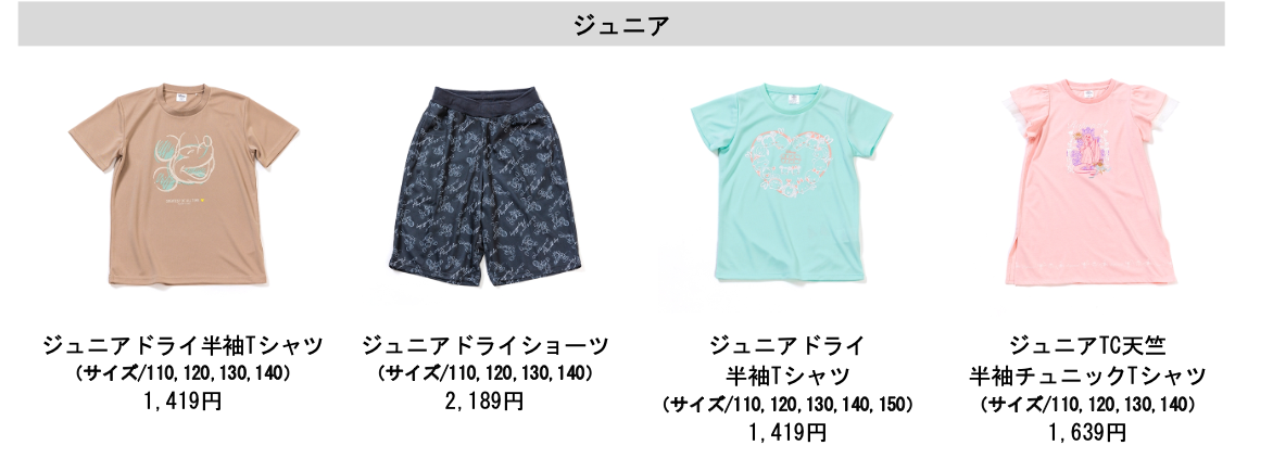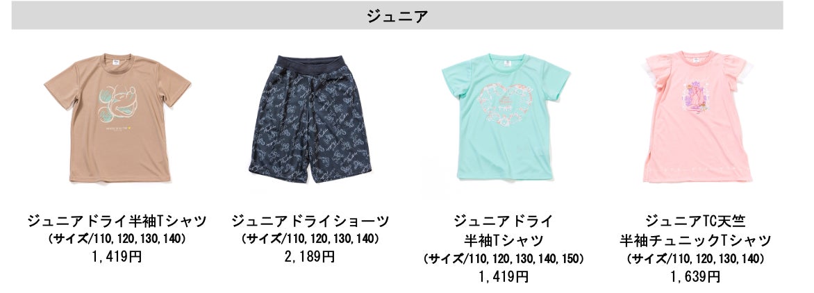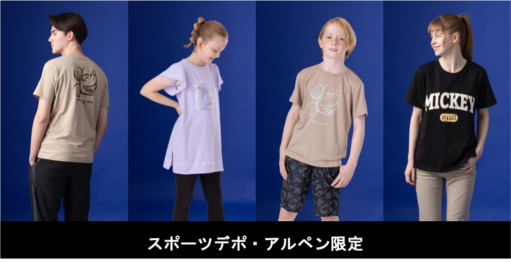 今回のコレクションに合わせて描き起こされた、オリジナルアートのディズニーキャラクターやディズニープリンセスたちに注目!接触冷感・吸水速乾・UVカット等の機能性も充実した、デイリーからスポーツシーンまで活用いただけるアイテムを揃えました。ディズニーファンの皆様の毎日を楽しく彩る、スポーツデポ・アルペンでしか手に入らないラインナップとなっております。メンズ・レディース・ジュニア展開で、価格はトップス:メンズ/2,189〜3,289円・レディース/2,189円・ジュニア/1,419〜1,639円、ボトムス:メンズ/4,389円・ジュニア/2,189円、ワンピース:レディース/4,389円(価格は全て税込み)と、お求めやすい価格となっております。