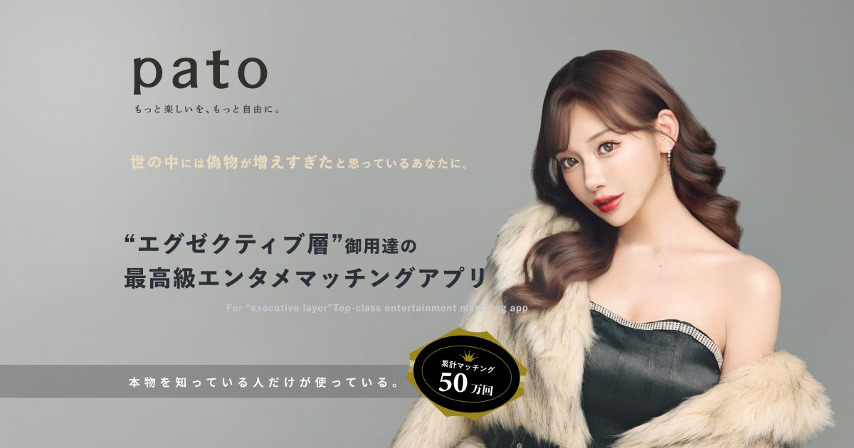patoは2017年のサービスリリース以降、“エグゼクティブ層”のお客様をターゲットとしたラグジュアリーな体験や出会いの実現を掲げサービス提供を行なっております。