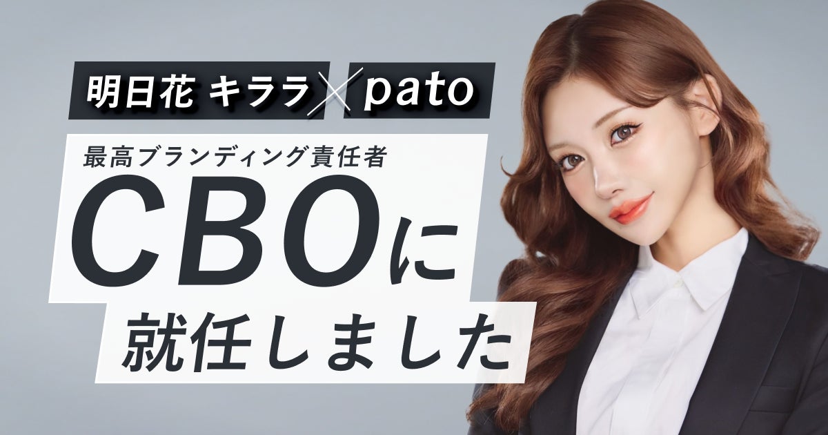 この度、明日花キララさんがpatoの最高ブランディング責任者(通称:CBO•••Chief Branding Officer)に就任いたしました。