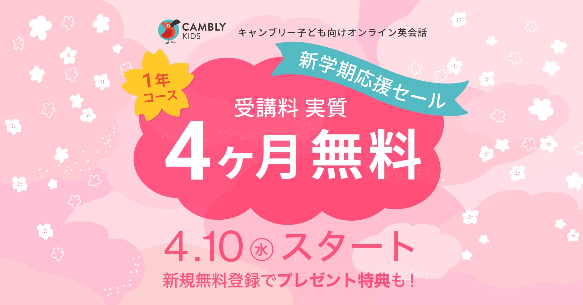 4月10日(水)から年最大級にお得な割引セールが始まります!ネイティブ講師との1年間の英会話レッスン受講料がなんと実質4ヶ月分無料。いまのうちにアカウント登録、体験レッスンを受講しましょう。進級・進学のタイミングで英会話レッスンを始めるなら、このチャンスをお見逃しなく!