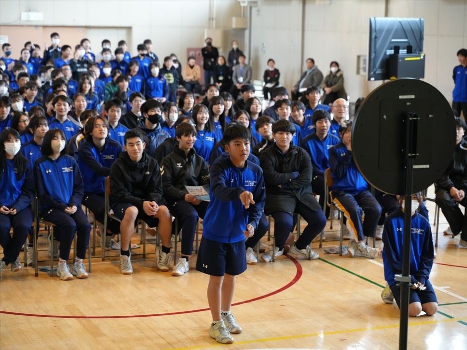 本イベントは同中学校が昨年実施した、公立中学校としては初の開催となるパラスポーツイベント「原リンピック」次回開催に向けたプレイベントとして開催。デフリンピアンである空手選手のパフォーマンスや手話・ハンドサインの体験の後、全校生徒約300人がスポーツダーツ交流企画で教員やハンディキャップを持つゲストと共に盛り上がりました。