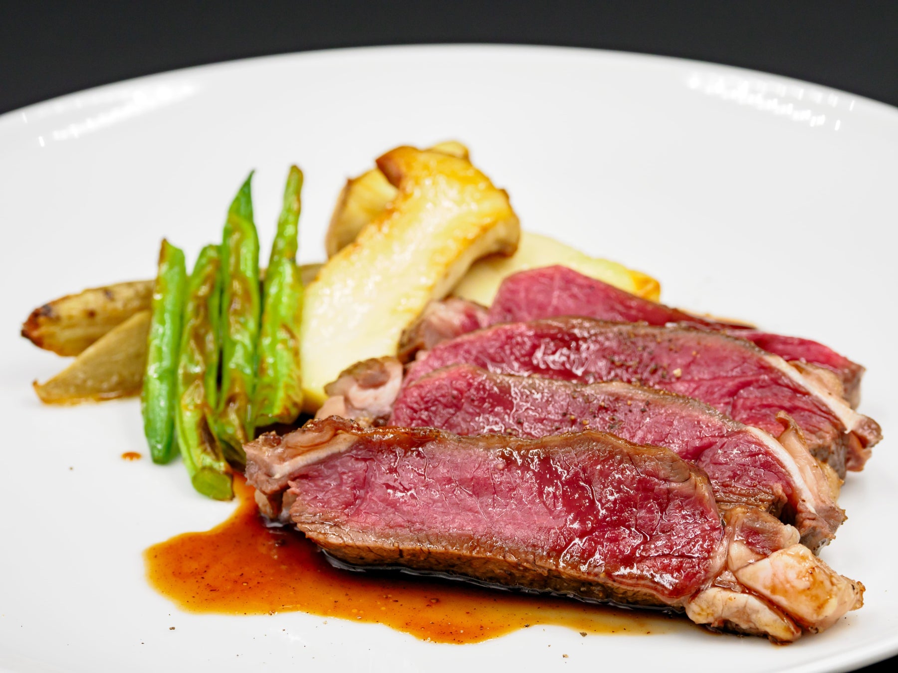 酸味のある赤ワインソースと深みのある鹿肉の相性は抜群です。