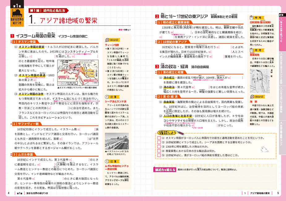 単元末に設けた「確認しよう」「論述力を鍛える」で知識を整理しながら、実力をワンランクアップすることができます。