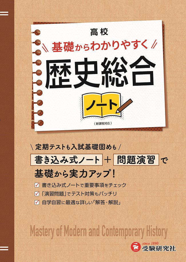 株式会社増進堂・受験研究社(本社:大阪市西区、代表取締役:岡本明剛)は、高校の定期テスト対策にオススメする、「書き込み式ノート+問題演習」で構成した『高校 基礎からわかりやすく 歴史総合ノート』を2023年9月22日より発売いたします。