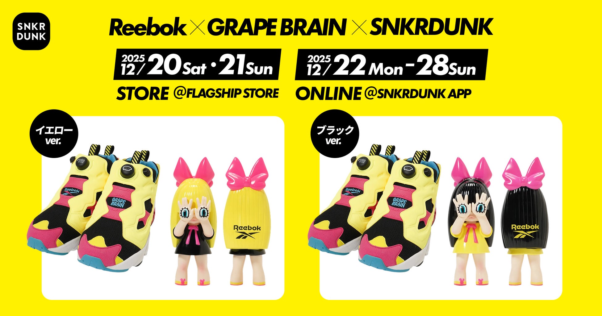 「SNKRDUNK(スニーカーダンク)」(以下、スニダン)を運営する株式会社SODA(本社:東京都渋谷区、代表取締役CEO:内山 雄太、以下SODA)は、アイコニック且つ革新的なスポーツカルチャーブランド「Reebok(リーボック)」と独自の世界観で“妖怪”をテーマにしたキャラクターを展開する「GRAPE BRAIN(グレイプ ブレイン)」とのコラボレーションで、限定デザインのスニーカーと人気キャラクター「にぎるちゃん」のソフビがセットになったスペシャルボックスを発売いたします。