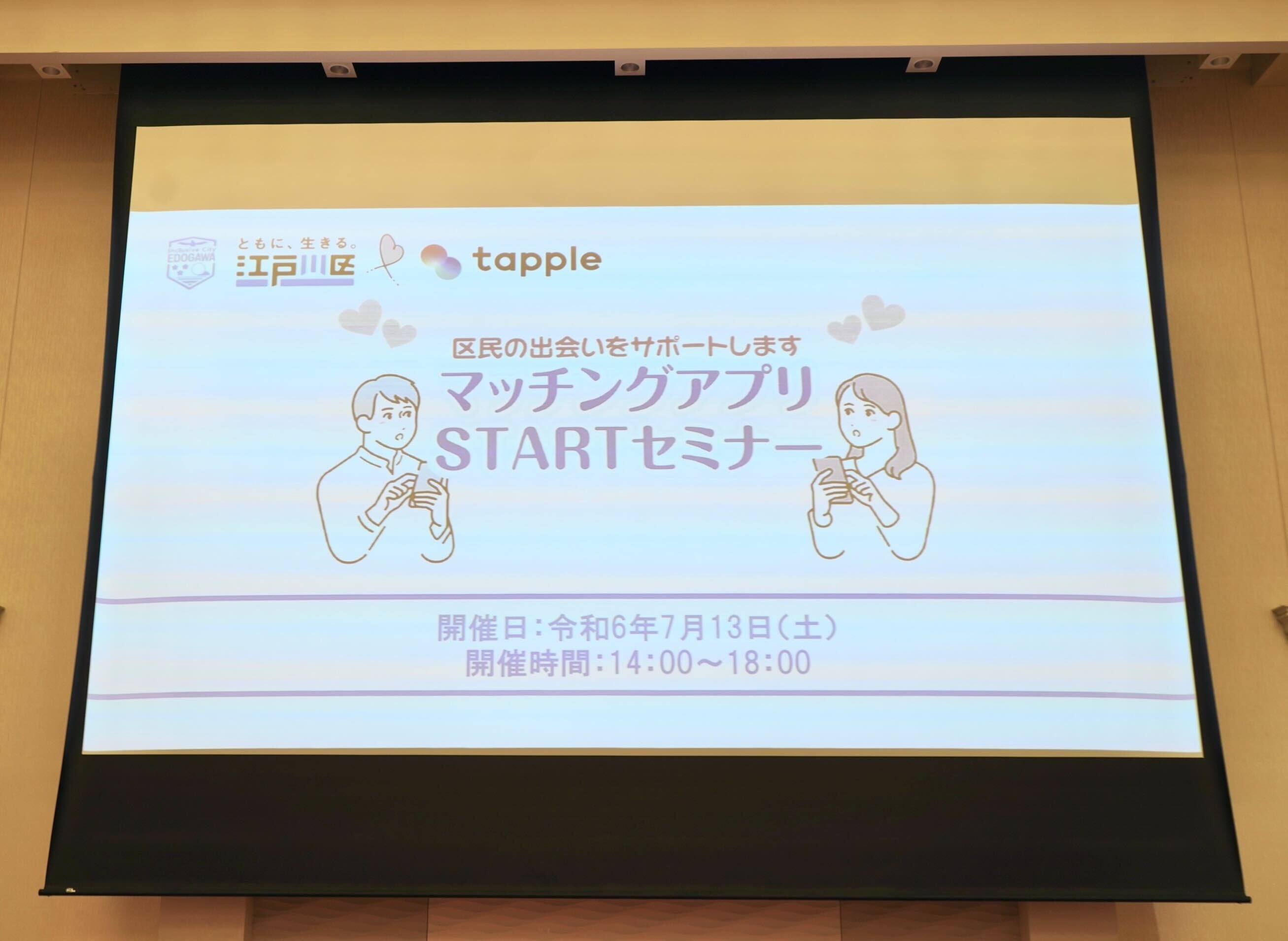 マッチングアプリ「タップル」を運営する株式会社タップル(本社:東京都渋谷区、代表取締役社長:平松繁和)は、2024年5月に東京都江戸川区と締結した「マッチングアプリ利用支援に関する連携協定」の取り組みの一環として、2024年7月13日(土)に江戸川区において「マッチングアプリ STARTセミナー」が実施されたことをお知らせいたします。