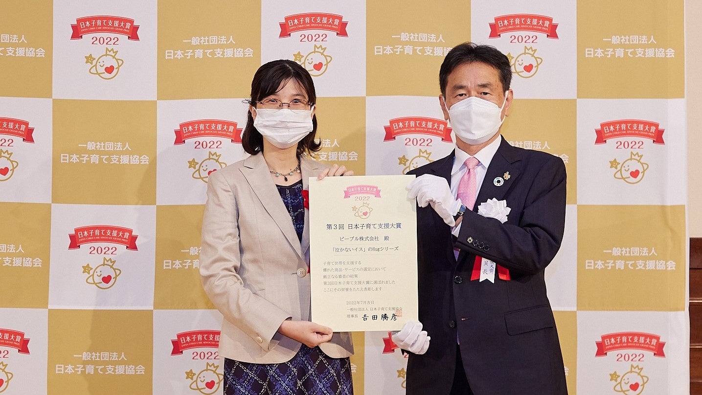 「2022年度日本子育て支援大賞」では、「安心・安全」、「便利、負荷の削減・低減」、「子どもの成長」、「親子のコミュニケーション」、「快適性」の5つの観点から子育て世帯に大いに役立ち魅力的であると評価された商品・サービスが受賞作品として選出されました。