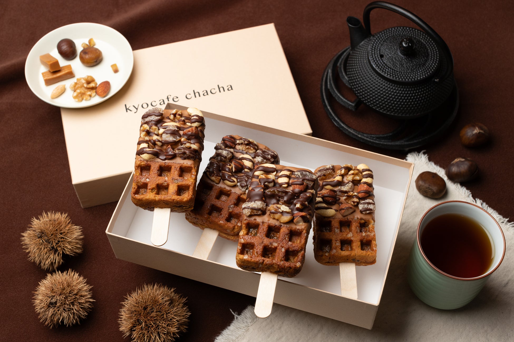 2017年4月より京都で運営しているワッフル専門店「kyocafe chacha」では、可愛くって食べやすいバータイプの新感覚ワンハンドスイーツ「京ワッフル」を販売しております。