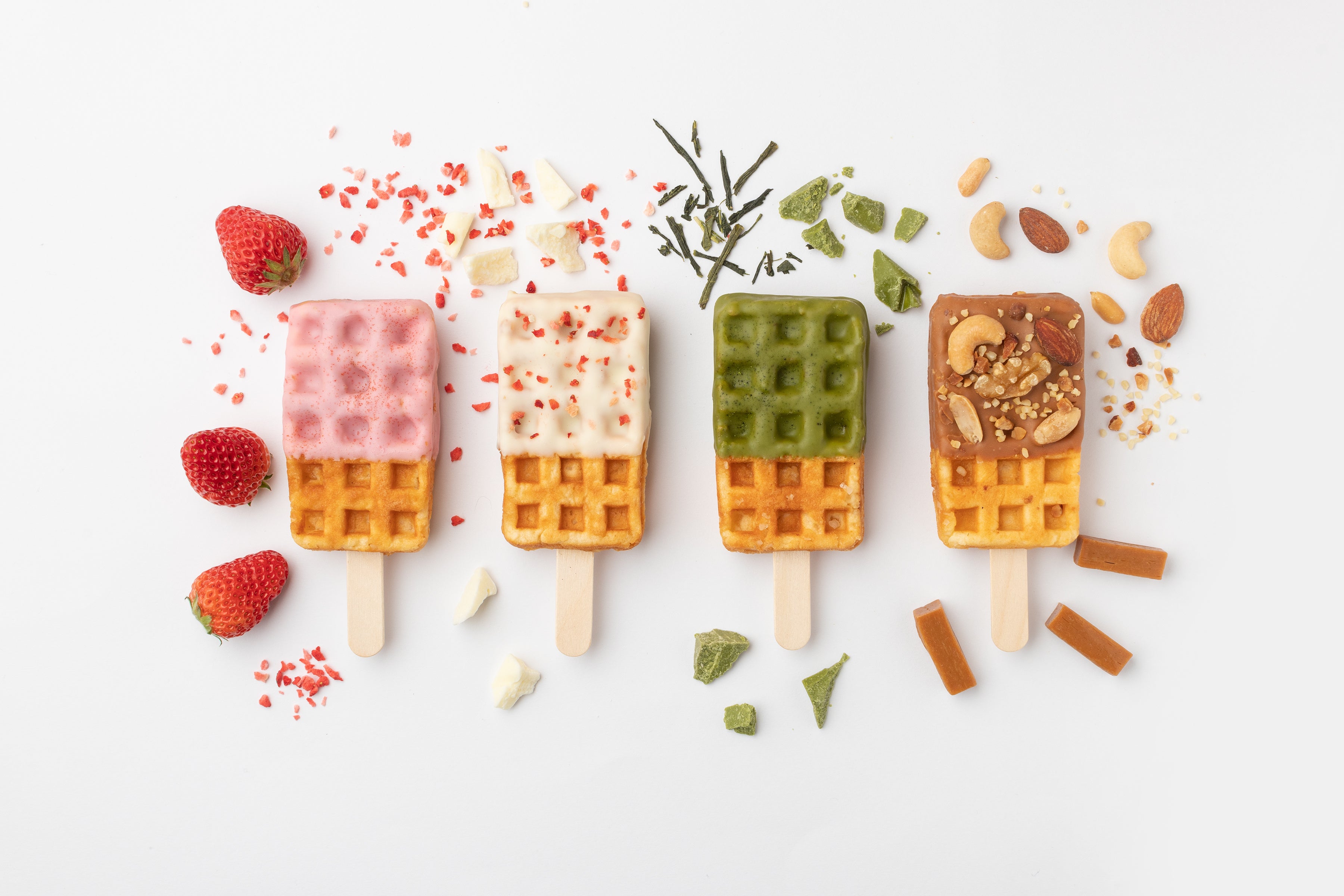 お腹も心も満たされる可愛くって食べやすい、新感覚のワンハンドスイーツ。SNSだけではなく、全国放送のテレビやWEBにも取り上げられ、幅広い世代から注目されているワッフルです。