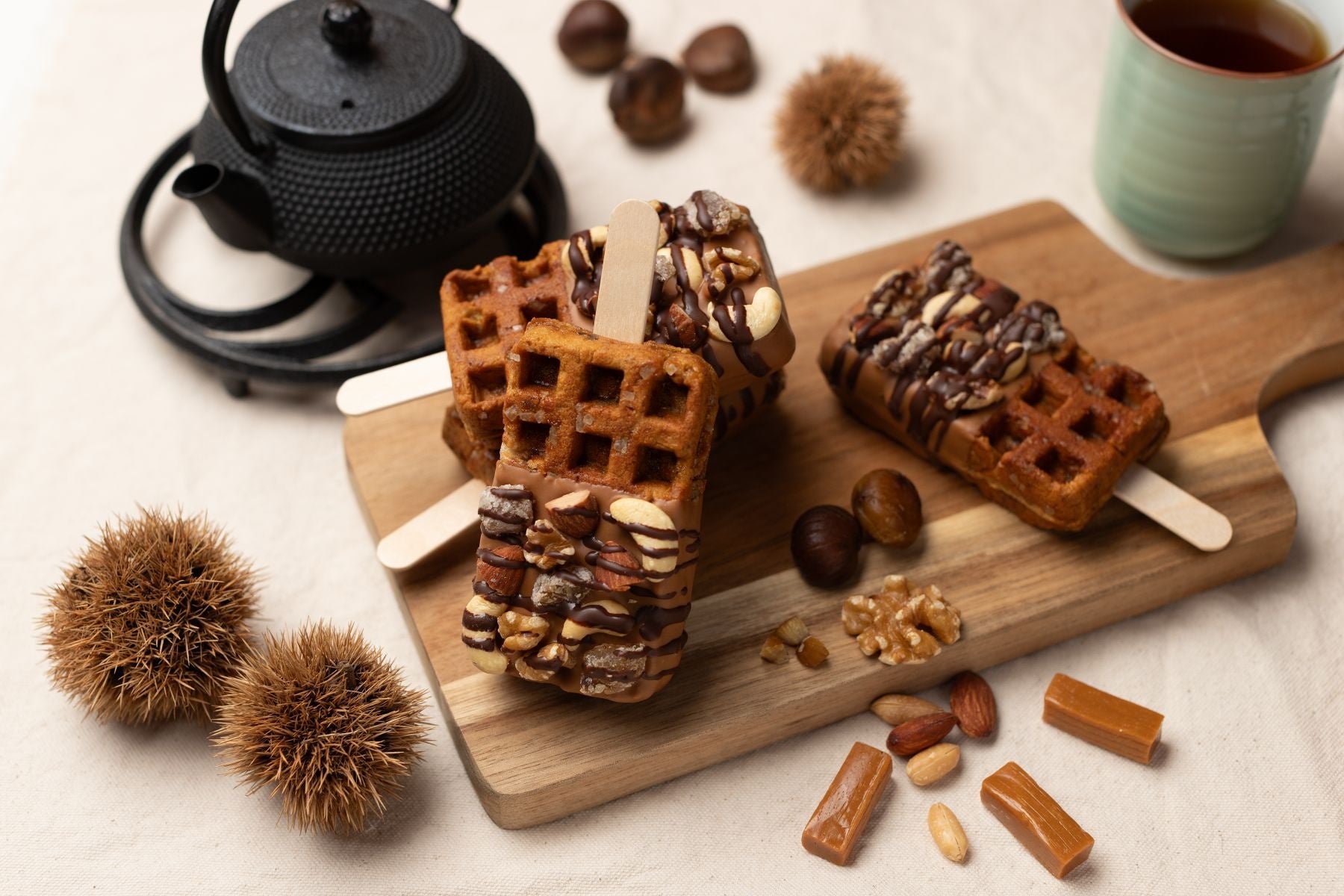 【温めて食べる】秋限定フレーバーは、ホクホク焼き栗×芳醇ほうじ茶がベストマッチした至高の逸品|「マロンほうじ茶 ワッフル」11月11日(土)~限定販売開始