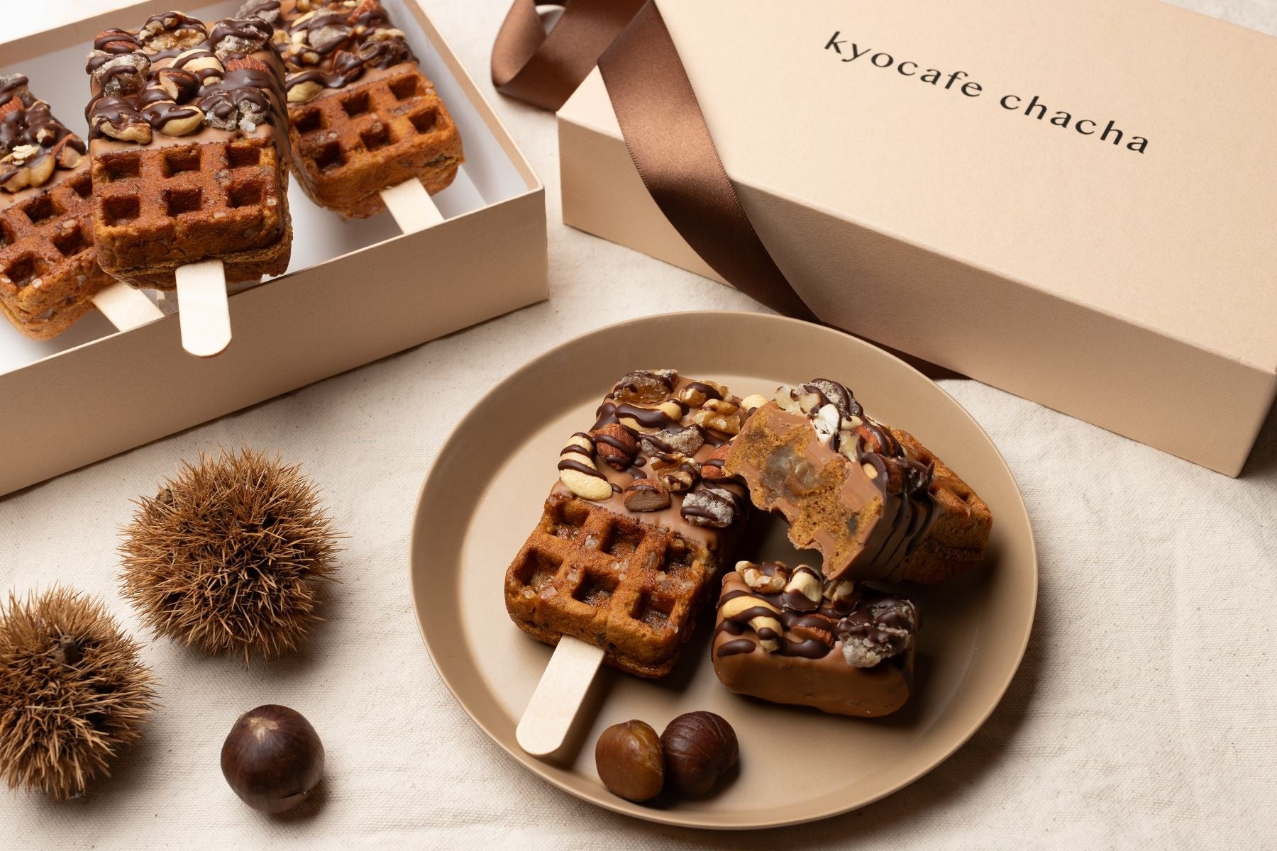 可愛くって食べやすい、ワンハンドスイーツとして注目されている京ワッフルを展開するkyocafe chachaから、11月の期間限定で「マロン ほうじ茶ワッフル」が登場します。