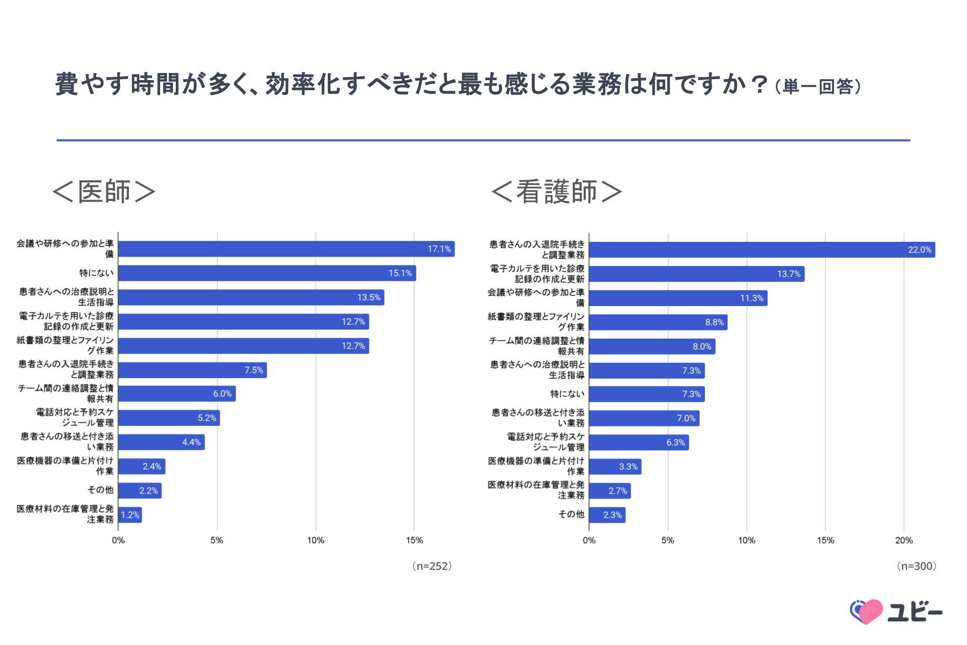 効率化ニーズの高い業務、医師は会議・研修、看護師は入退院業務が最多