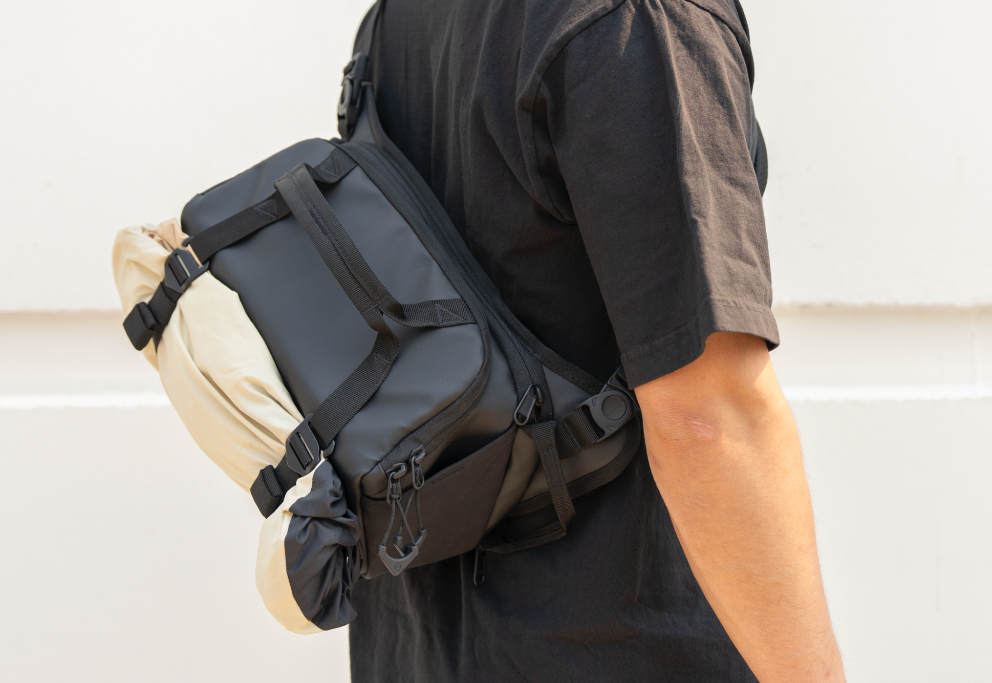 街中からアウトドアまでさまざまなシーンで快適に持ち運べる、理想的なスリングバッグです。