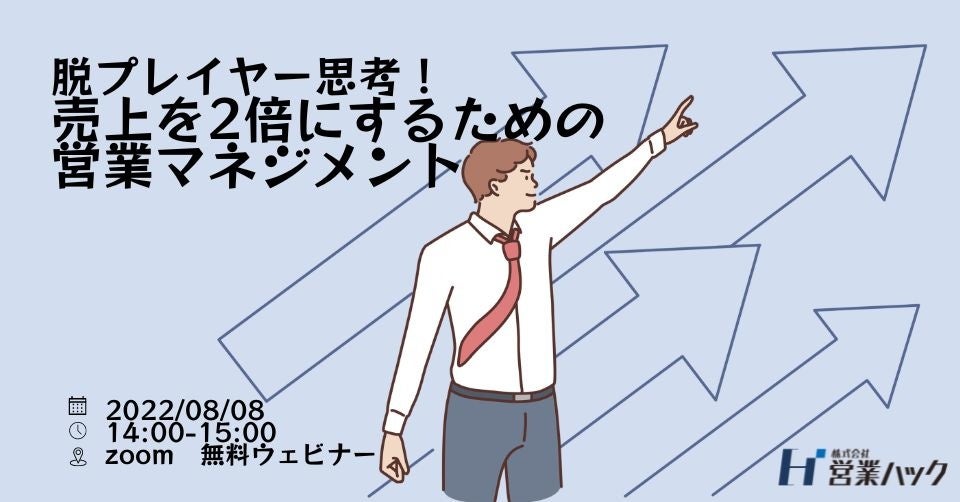 脱プレイヤー思考!売上を2倍にする営業マネジメント法を解説します|無料ウェビナー開催|8/8(月)14時~