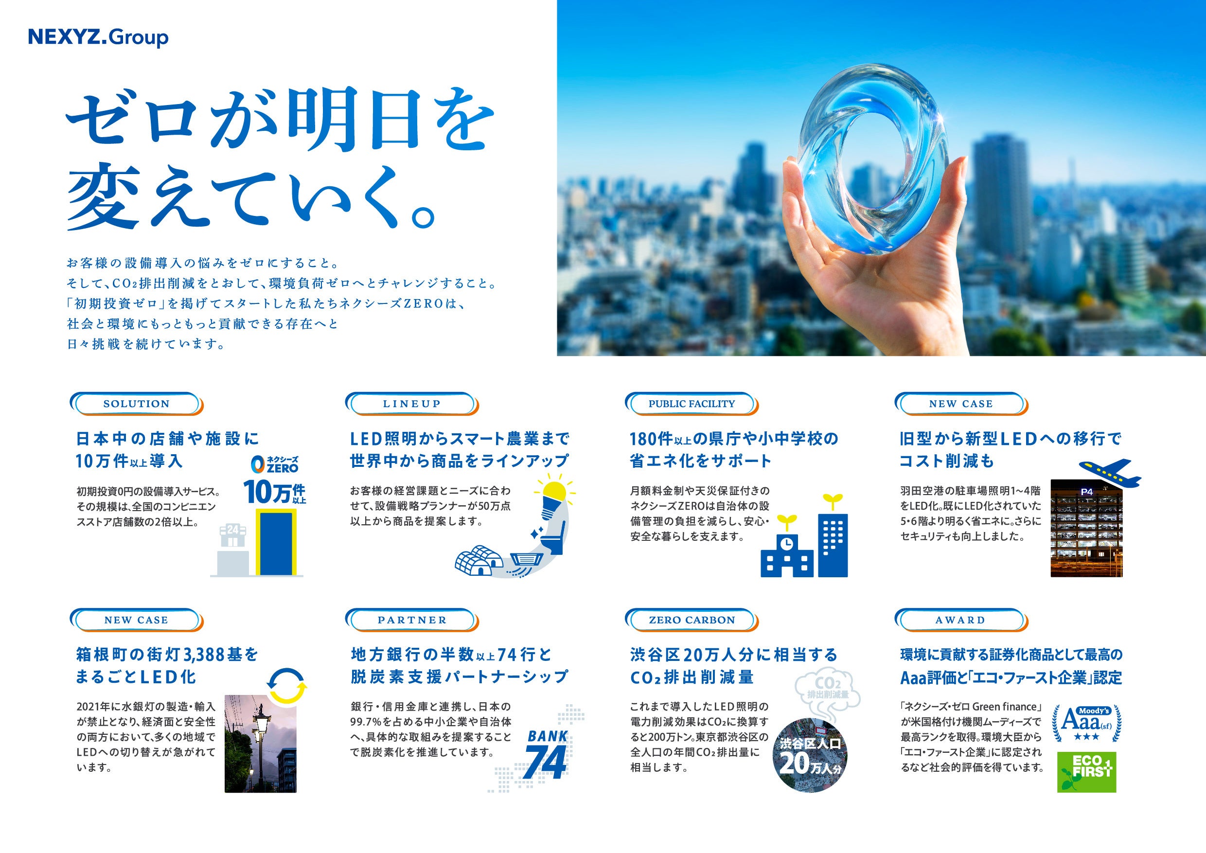 しかしながら、当社が提供する「ネクシーズZERO」は、初期投資0円でLED照明をはじめとする省エネ設備を導入できる組込型金融(エンベデッド・ファイナンス)サービスであることから、中小企業にとってコストをかけず具体的に取組める脱炭素となります。