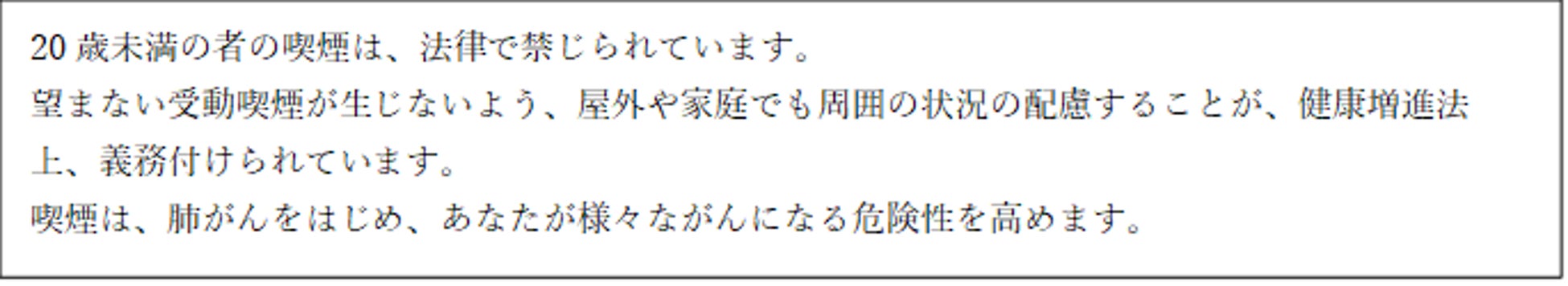 BATグループでは、たばこ製品のマーケティングを適切に実施するために国際的な自主規準を設定しています。そのため消費者に対するたばこ製品に関するすべてのコミュニケーションには、20歳未満の方へのコミュニケーションをお控えいただくとともに、「喫煙と健康に関する注意文言」を表示することを関係各位にお願いしております。加熱式たばこに関しては、記事掲載していただく際には、「健康に関する注意文言」が表示されるようご配慮いただきたく存じます。ご協力の程、何卒よろしくお願い申し上げます。