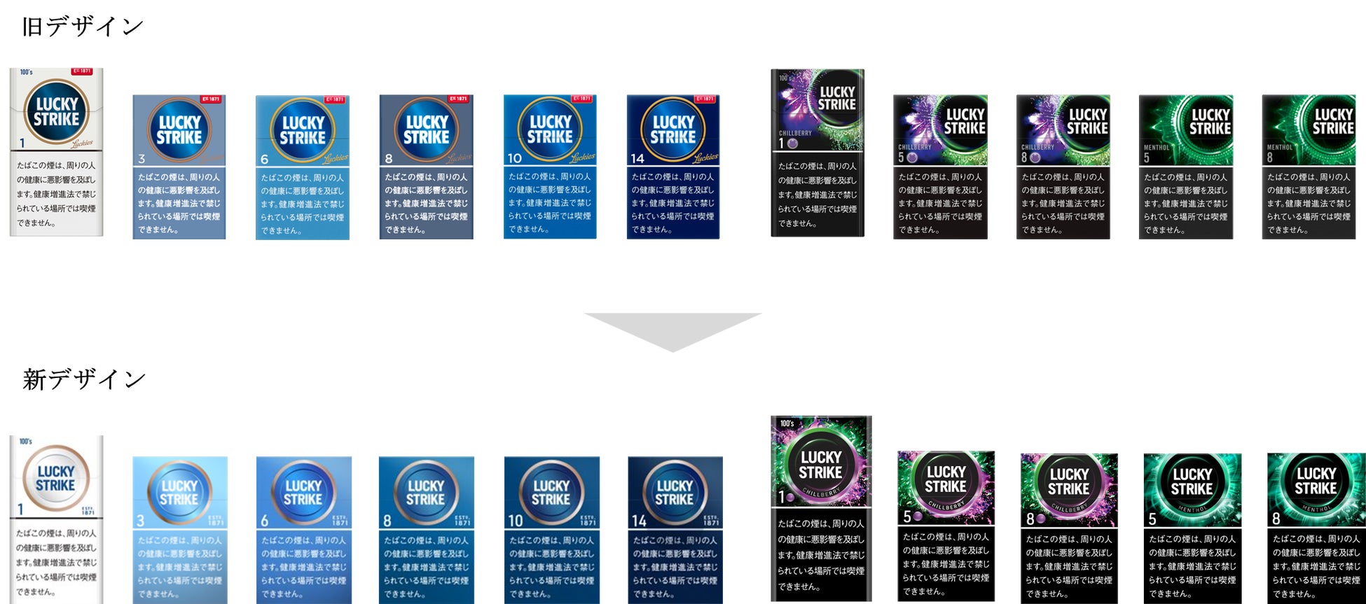 パッケージラインナップ(新旧デザイン対照)
