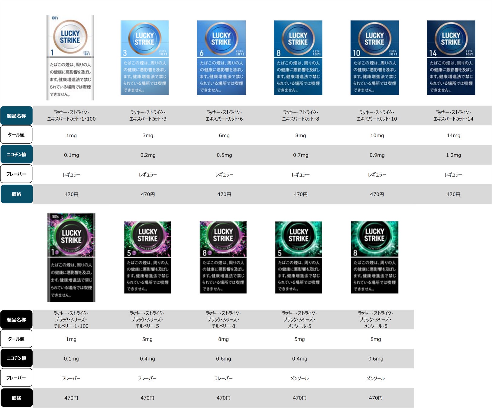 ブリティッシュ・アメリカン・タバコ・ジャパン合同会社(BATジャパン、本社:東京都港区、代表:エマ・ディーン)は、本格的でなめらかな味わいかつしっかりとした吸いごたえを特長とする「ラッキー・ストライク」の「エキスパートカット・シリーズ」及び「ブラック・シリーズ」計11銘柄のパッケージをリニューアルし、11月10日(月)より全国の主要コンビニエンスストア、たばこ販売店、スーパーマーケット等のたばこ取扱店で発売します。