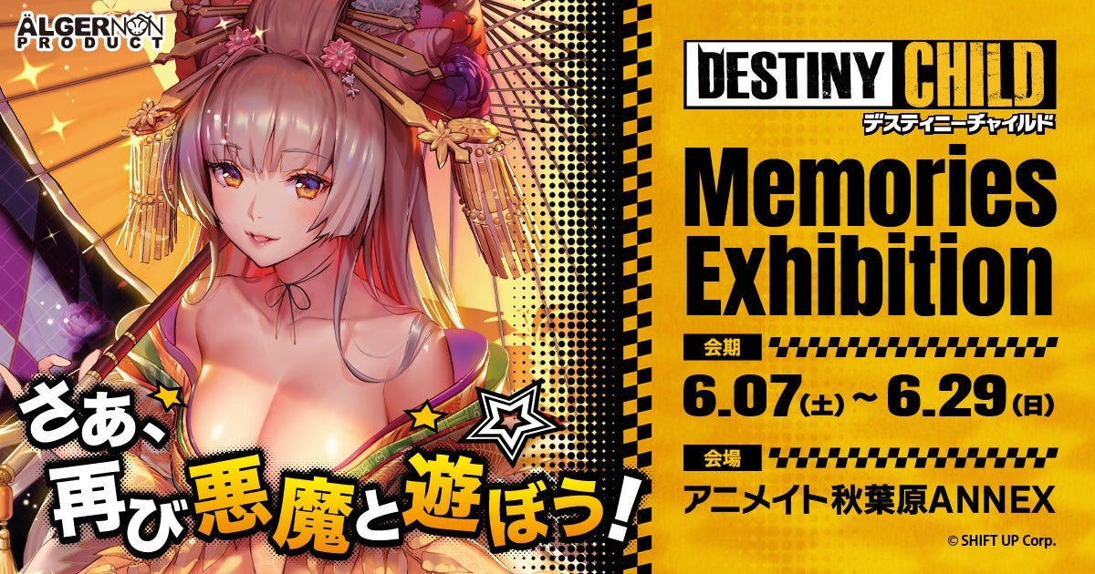 株式会社アルジャーノンプロダクトは、アニメイト秋葉原ANNEX2階にて『デスティニーチャイルド』のPOP UPイベント「Memories Exhibition」を2025年6月7日(土)~6月29日(日)の期間で開催いたします。