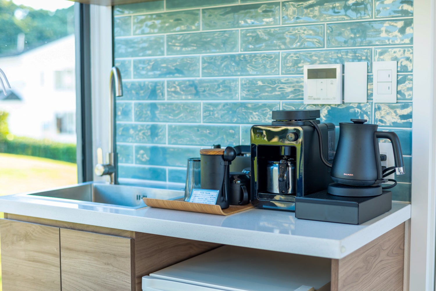 アウトドア初心者や女性、子供でも安心して快適にお過ごしいただけるよう充実した専用設備をご用意。各棟内には専用のシャワールーム、洗面、トイレを、またデッキスペースには水着着用の上お楽しみいただくバーデプールを完備しております。タオルや歯ブラシなど基本的なものはもちろん、女性用にスキンケアセットのご用意と、アメニティもホテルクオリティの充実したラインアップです。