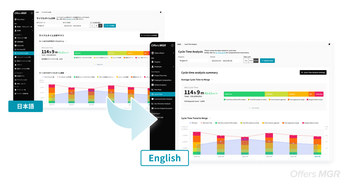 国内では海外のソフトウェアエンジニアを採用する企業が増える中、開発組織で英語でのコミュニケーションが行われている企業が増えています。また、英語圏ではリモートワークや昨今の景気懸念から組織のコストコントロール・マネジメント強化の背景から、より細やかな組織マネジメントサービスの需要が増えています。
