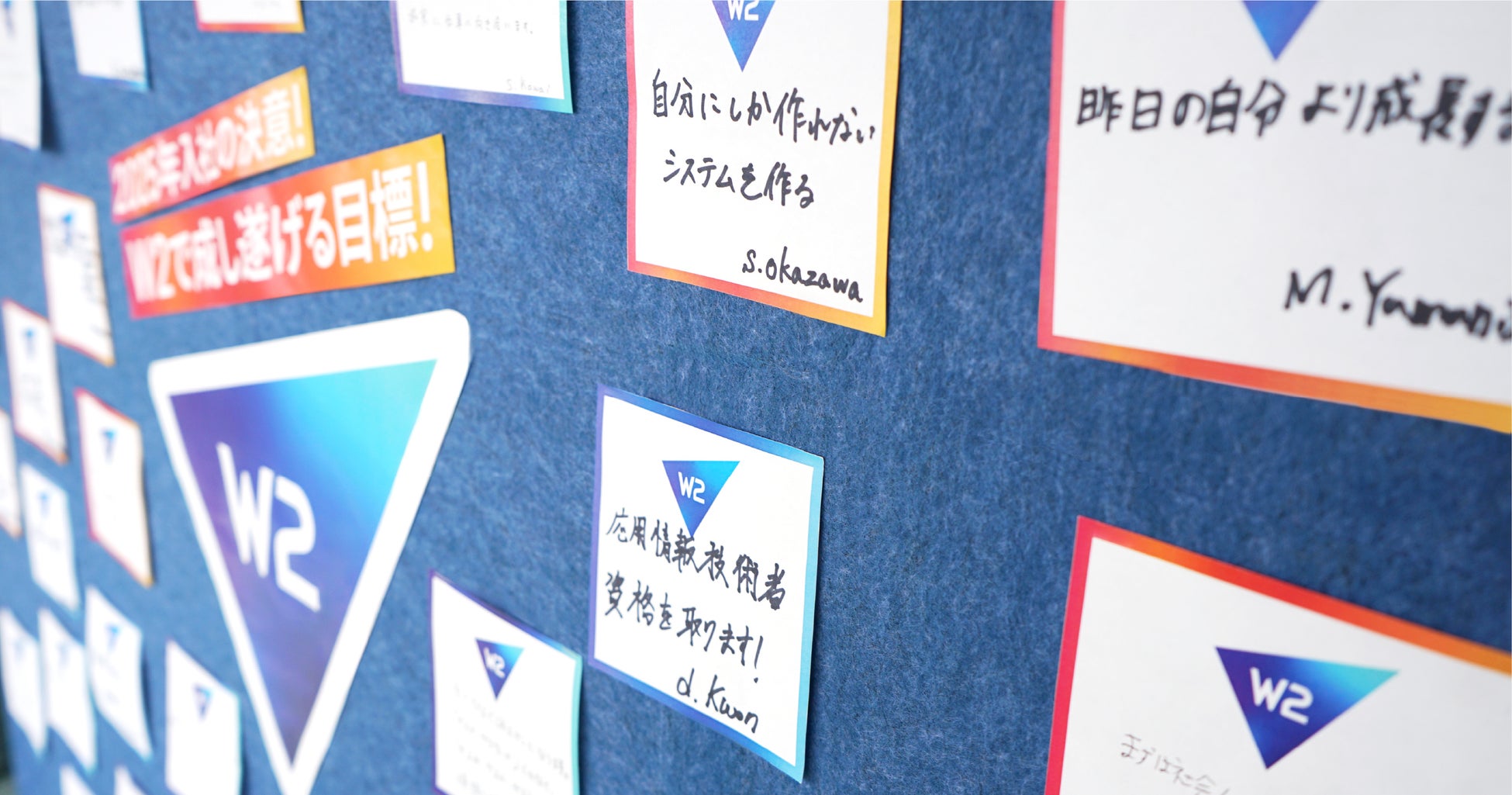 私たちは不安を抱えつつも、目の前の仕事に真摯に取り組み、挑戦を恐れずに成長したいと考えています。W2は挑戦を促す文化であり、失敗を支えてくれる先輩方がいる環境です。