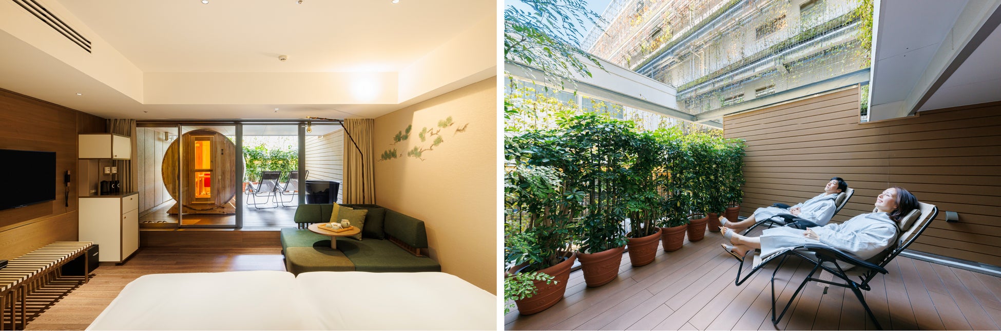 プライベートサウナを心ゆくまで堪能できる「テラスサウナルーム」と、こころを“無”にする究極の瞑想体験を客室内で行える「瞑想(MU) ROOM」を京都の繁華街・河原町にあるホテルで体験できます。