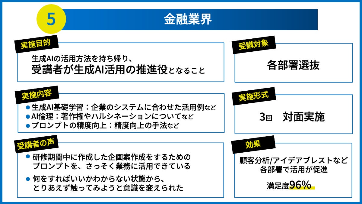 株式会社サイバーエージェント(本社:東京都渋谷区、代表取締役:藤田晋、東証プライム市場:証券コード4751)の100%子会社で、生成AIを活用できる人材を育成する生成AIリスキリングを提供する株式会社AI Shift(本社:東京都渋谷区、代表取締役社長:米山結人)は、生成AIリスキリングの導入事例と共に、その効果についてまとめた事例集第二弾を公開しました。