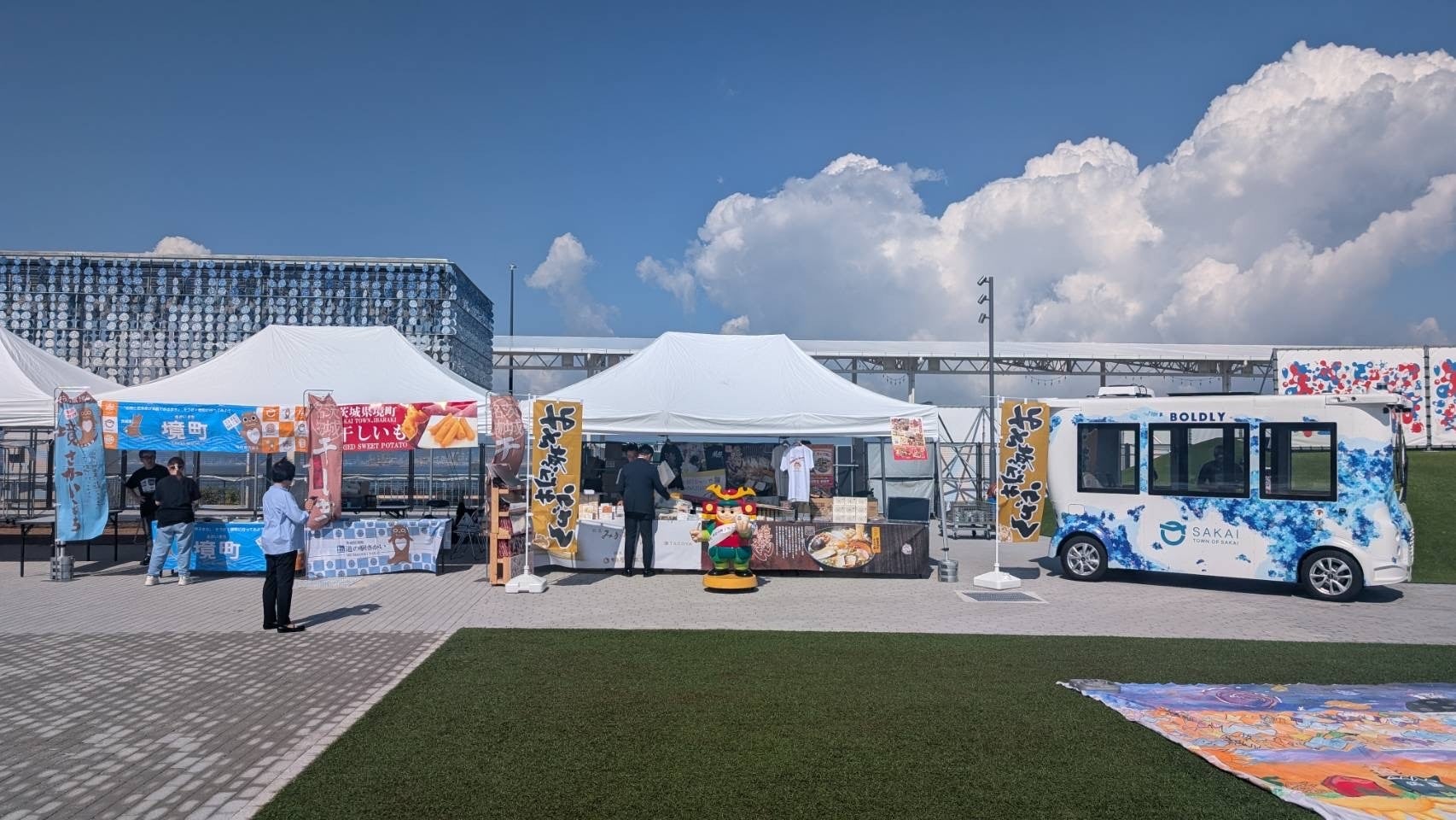 10月1日に、絵の完成式典に併せEXPOアリーナにて当町のPRブースを設けたほか、当町の公道を定常走行中の、エストニア共和国・オーブテック社製自動運転車「MiCa(ミカ)」を展示しました。