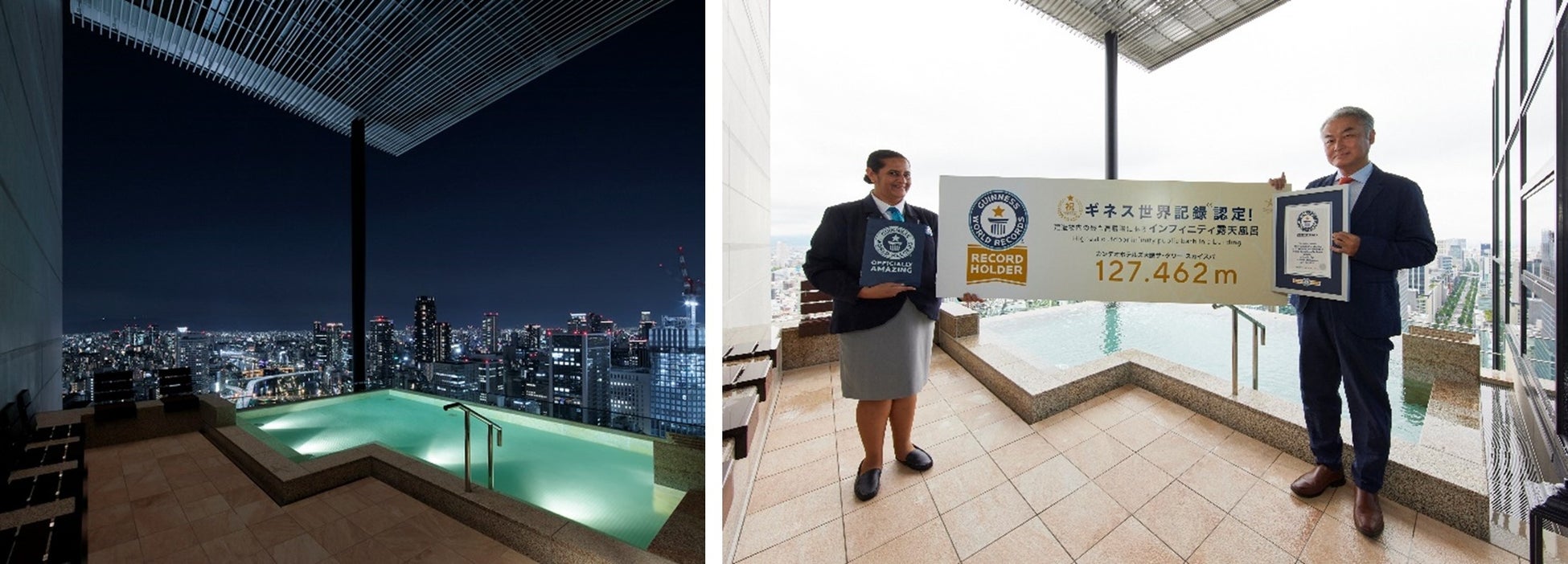 株式会社カンデオ・ホスピタリティ・マネジメント(本社:東京都港区、代表取締役会長兼社長:穂積 輝明)が2024年7月17日(水)に開業する「カンデオホテルズ大阪ザ・タワー」(大阪府北区)は、地上31階に「インフィニティ露天風呂」が誕生。「建造物内の最も高層階にあるインフィニティ露天風呂/ Highest outdoor infinity public bath in a building」として、本日2024年7月11日正式にギネス世界記録に認定され、ギネス世界記録™公式認定員より、公式認定証の授与が行われました。