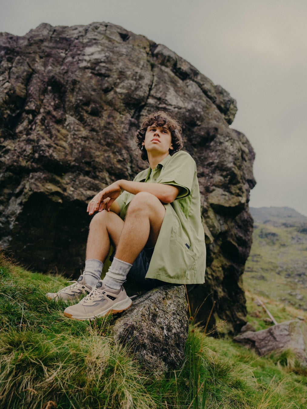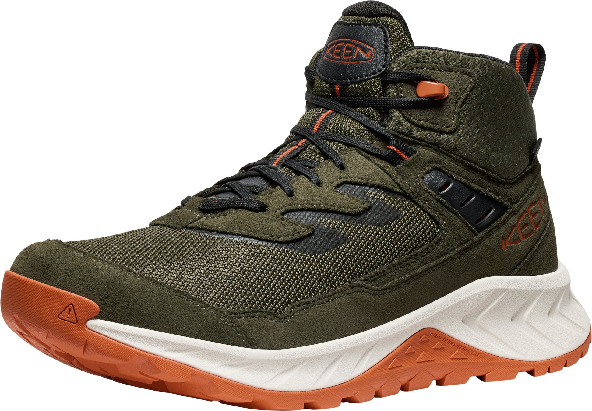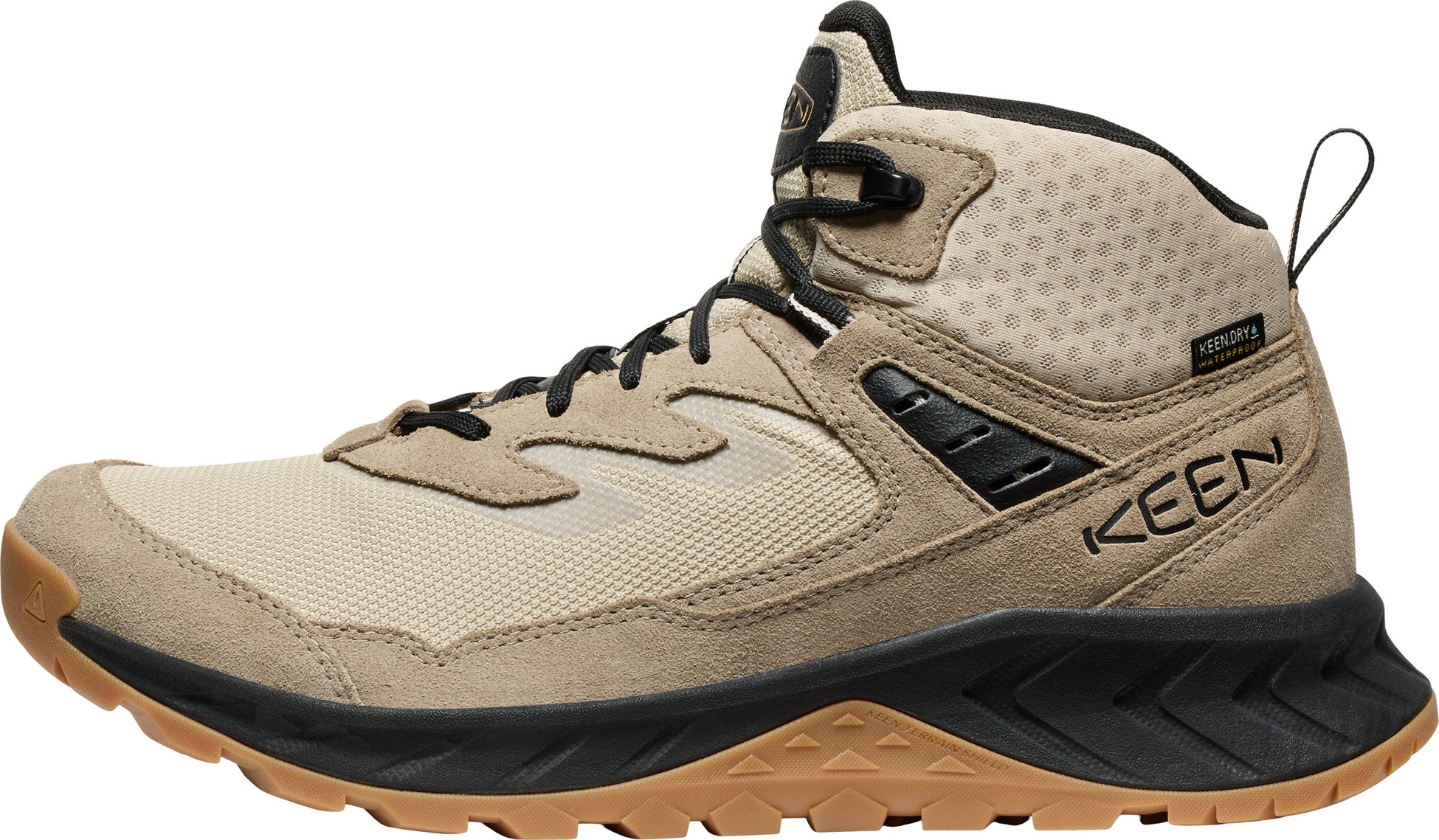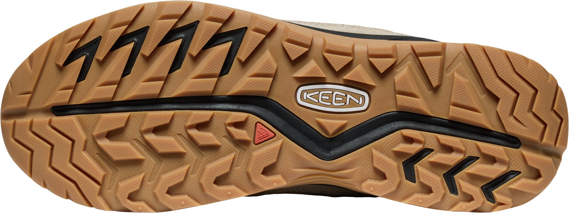 KEENは多用途で、耐久性に優れた持続可能なフットウェアを提案しています。ハイキングブーツとシューズの機能をハイブリッドした<HIGHTRAIL>コレクションのアッパーは、レザーとメッシュのコンビネーションで耐久性と通気性を両立。ミッドソールにはクッション性の高い高反発EVAフォームを採用し、スポーティな履き心地を生み出します。アウトソールにはアスファルト、砂利道、岩場などの様々な地形で高いグリップ力を発揮する、全方向型アウトソールを採用。シャンクは搭載せず、アウトソールのラバーを中足部で巻き上げ、過度なねじれを抑制し、安定感とスムーズな推進力を生み出す「KEEN.TERRAIN SHIELD(キーン・テレインシールド)」を搭載。使用するパーツを減らすことは、エココンシャスなモノづくりにもつながります。