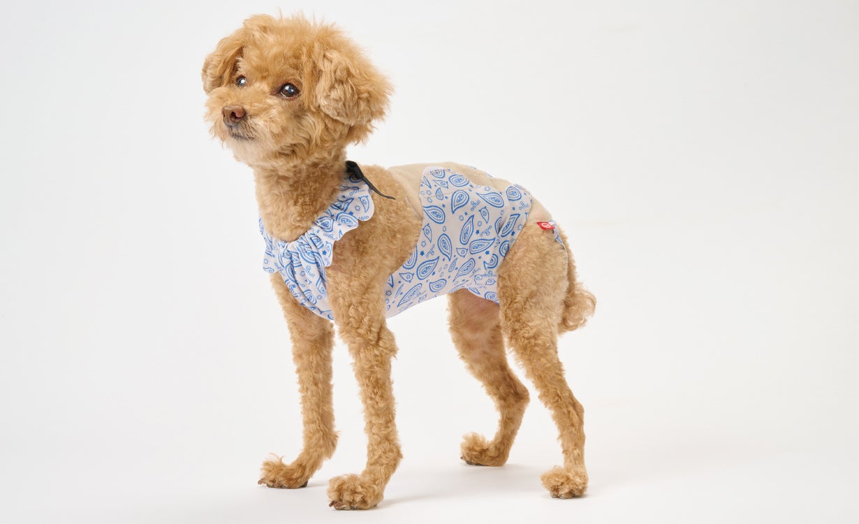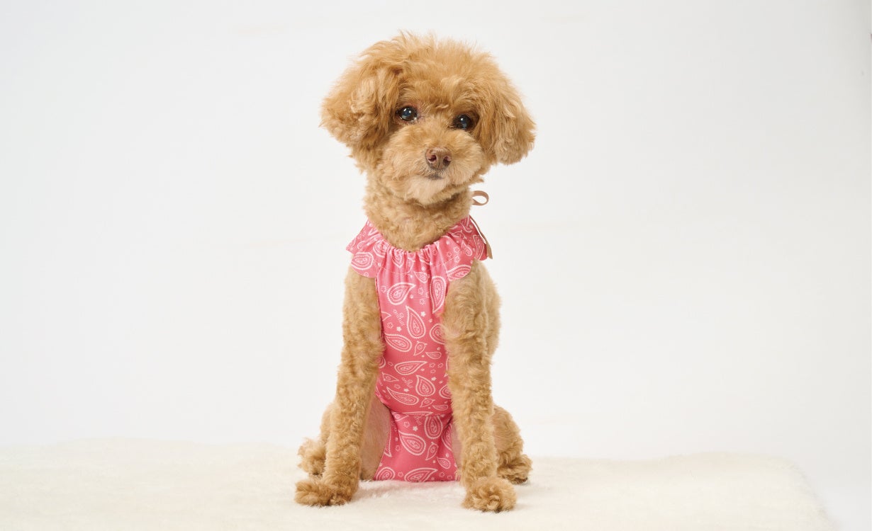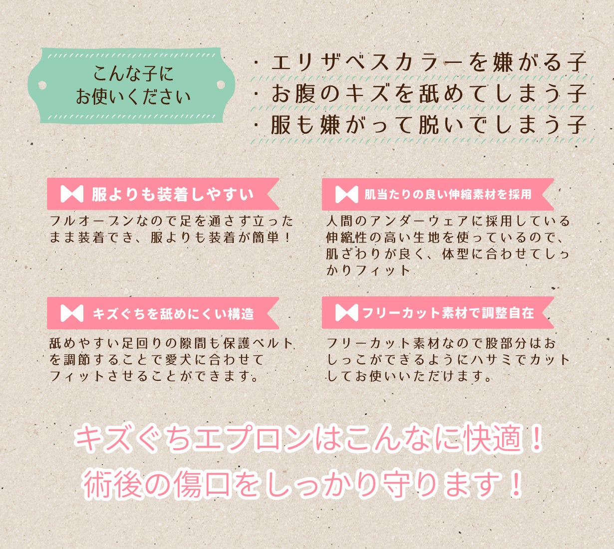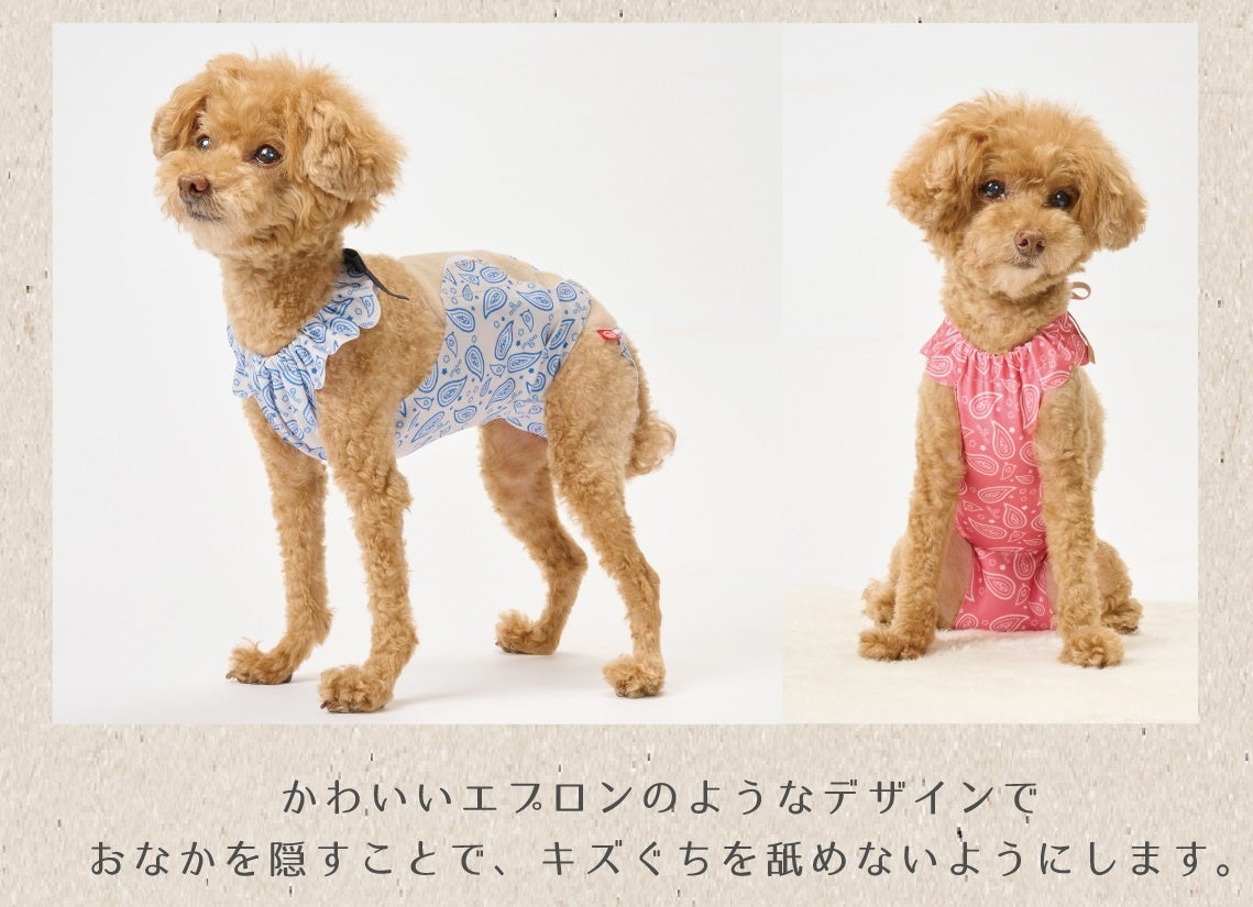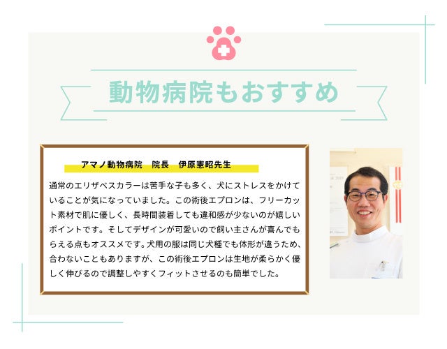 - エリザベスカラーより快適に、服より簡単に。 エプロンならではの軽やかさ。