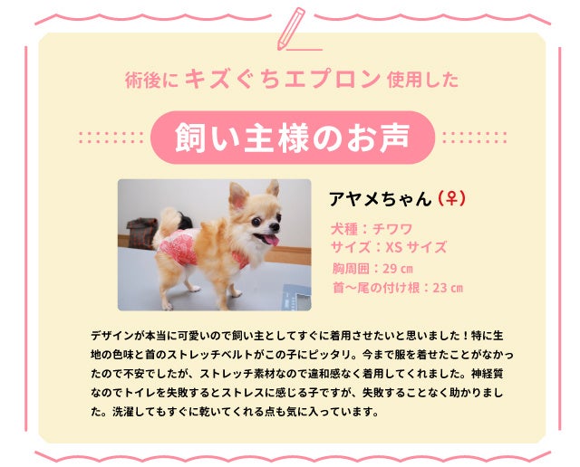 愛犬想いのご家族にこそ、きずぐちエプロンをご活用いただき、不安な術後期間を少しでも快適にお過ごしください。