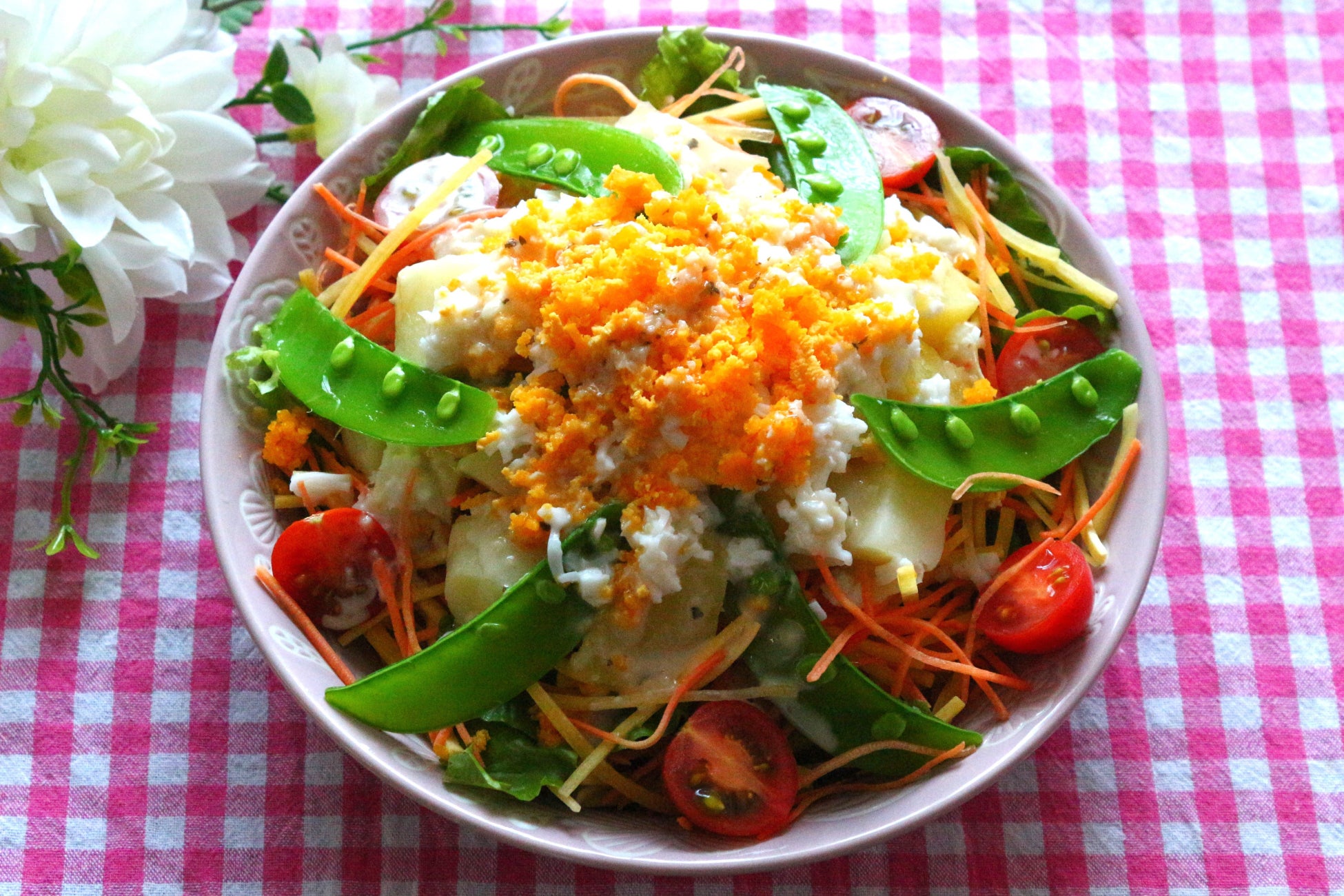 春に旬を迎える食材をたっぷり使って、鮮やかな彩りに仕上げた季節のサラダです。