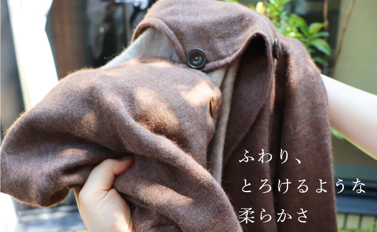 ・タイトル:寒さが苦手な方へ。極上のぬくもりをお届け。希少なベビーアルパカのカーディガン