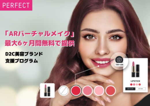 本プログラムは、パーフェクトのセルフで導入ができるバーチャルメイク試着機能*1を、最大6ヶ月間無料で提供するものです。パーフェクトの提供するバーチャル試着技術は、2015年から提供をスタートし、現在では全世界で500以上のブランドが導入するまでに成長しています。導入ブランドからは、新商品キャンペーンサイトのページ滞在時間が4.3倍になった事例や、平均PVが11.4倍(AR導入ページ vs 非導入ページ)に、自社ECサイトCVRが~300%アップ、店頭販売が3~130倍等の導入効果報告を受けています。