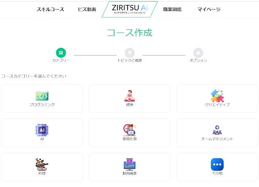 これらの情報を基に、ZIRITSU AIが最適な学習コースを自動生成し、学習者が必要とするカリキュラムを瞬時に提供します。