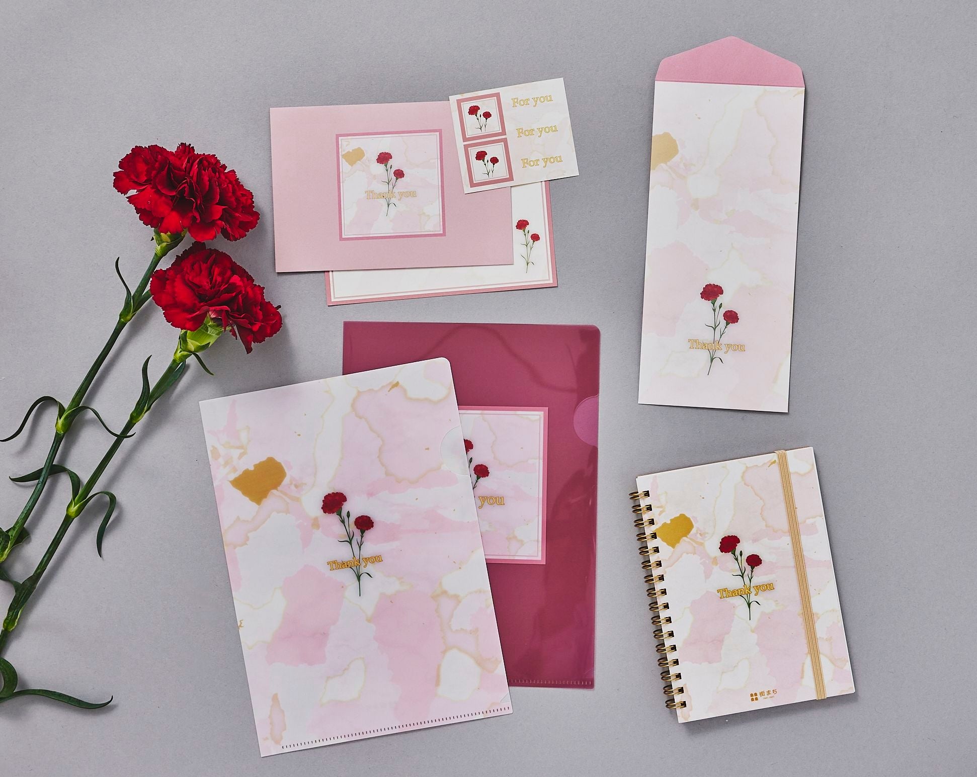 10種類のデザインを「A5クリアファイル」「A6リングノート」「メッセージカード」「長封筒」4つのアイテムで展開します。